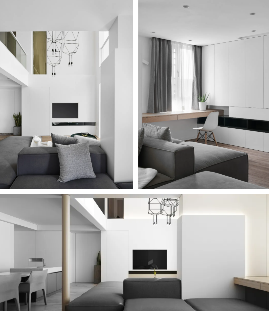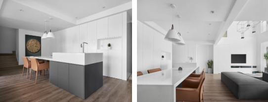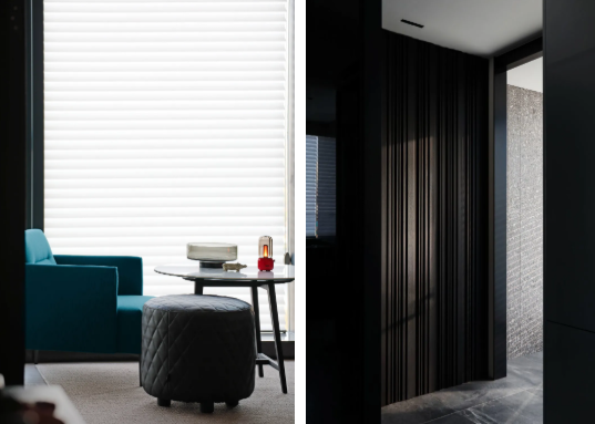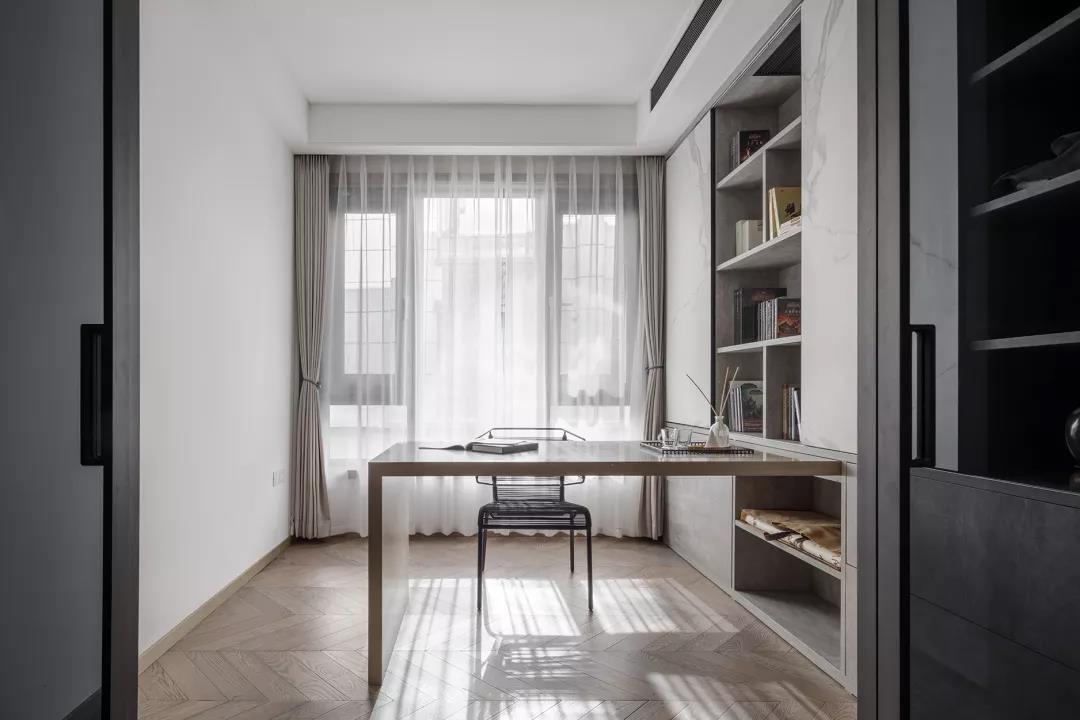 空间内敛、克制,弱化传统意义上的装修,尽量不予显露人为的痕迹,完成了一 次润物无声的内在转化,还原了生活的日常本真与精神质性。