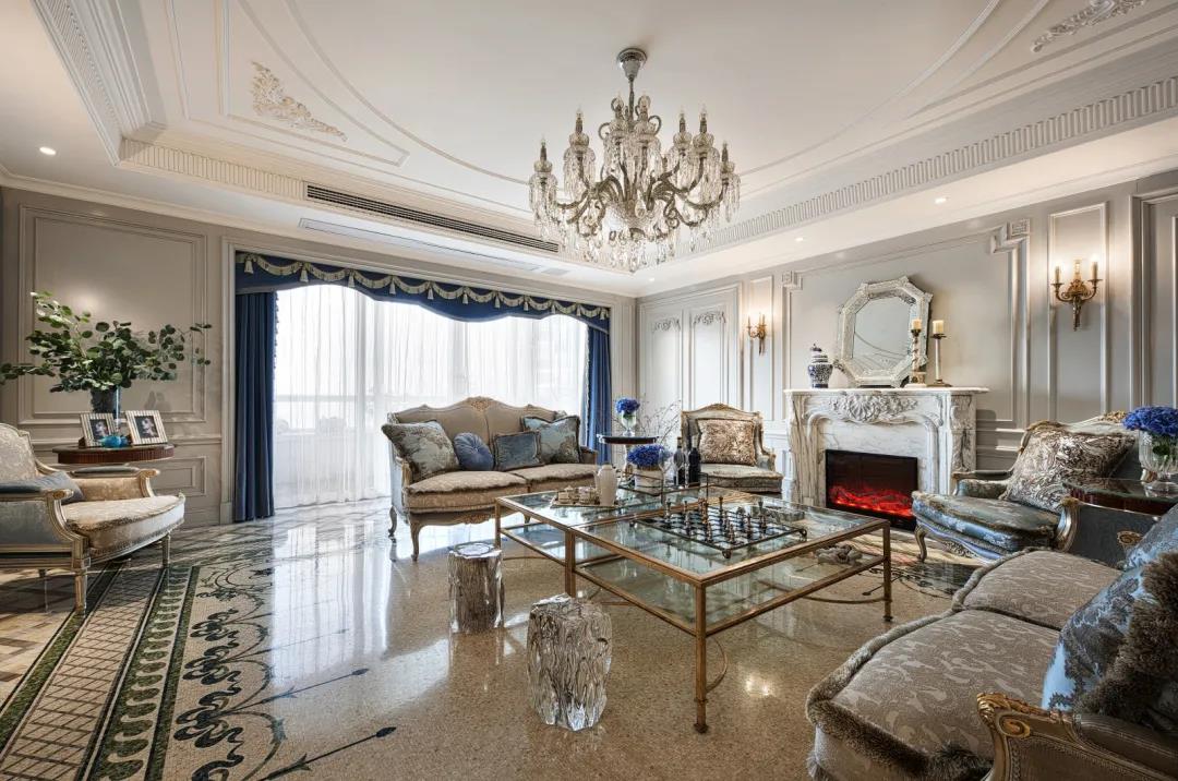 设计理念:项目以钱塘江的多变开阔包容为发想,江面映射着天空纯澈静谧的蓝,水天一色,天空之城。于是设计师有了心中的主题。本案以湖蓝色作为灵魂之色。家居淡淡的香槟色是傍晚华灯初上撒下的心情,唯美唯爱。