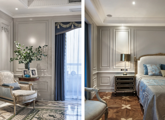 中性的柔和色调,高级有质感,以干净纯粹的浅灰色,使空间彰显出低调张弛的 典雅。我们选择更简约的线条来融合空间,在视觉上给人一种精致和奢华的现代 体验,营造温馨时尚的设计氛围。