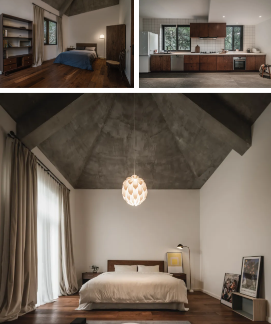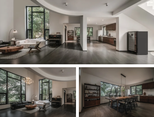 整个空间干净、自然、熟稔。有当代空间中体块与体块之间的几何形体之美,也 有属于古老感官经验中的大开大合的静穆与轻盈。在这里,墙体一再退避舍让, 空间一再连续扩容,放弃一切装饰、一切色彩、一切符号与形式,让空间回归通 透与自由,让生活回归生活本身。这便是空间极致的力量。