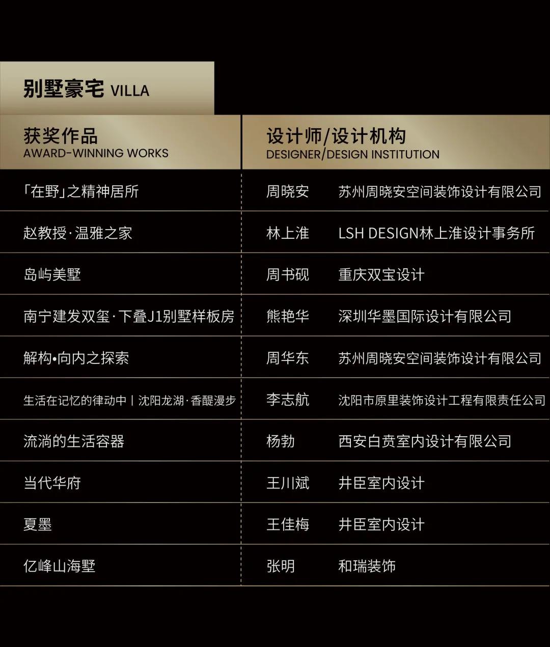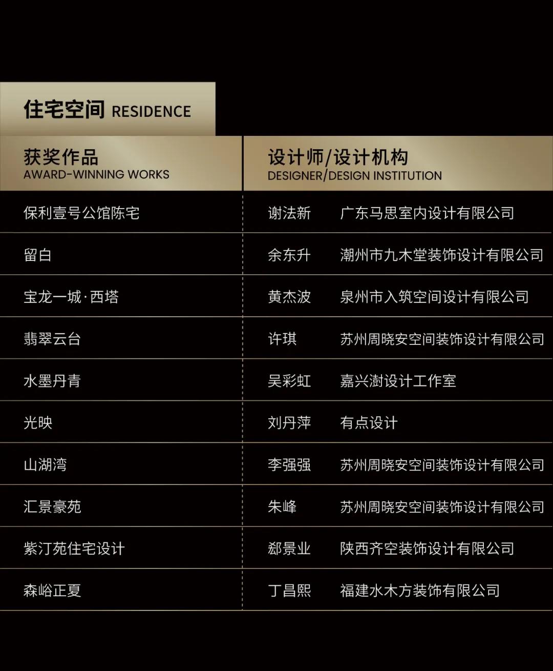 WYDF2021年度大中华区室内设计金奖面向2021年1月1日至2021年10月20日期间在大中华区有完成竣工的空间设计项目的设计师/设计机构开放参评,截止至2021年10月20日,已收到逾千套作品。经过大中华区组委会的严格审核,从住宅公寓、别墅豪宅、商业空间三个类别的参评作品中,按照评审标准各评选出不超过10套优秀作品当选各个类别的WYDF2021年度大中华区室内设计金奖。
