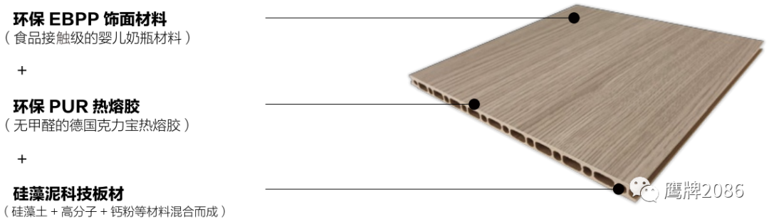 瓷砖十大品牌鹰牌2086装配式墙板,是由硅藻泥科技板+环保PUR热熔胶+环保EBPP饰面材料组合而成的,不仅能实现轻便快装、杜绝甲醛/TVOC的释放,还能拥有防污易洁、抗菌抗敏、 防水防潮、抗弯耐用等性能,是品质与健康的双重保证。