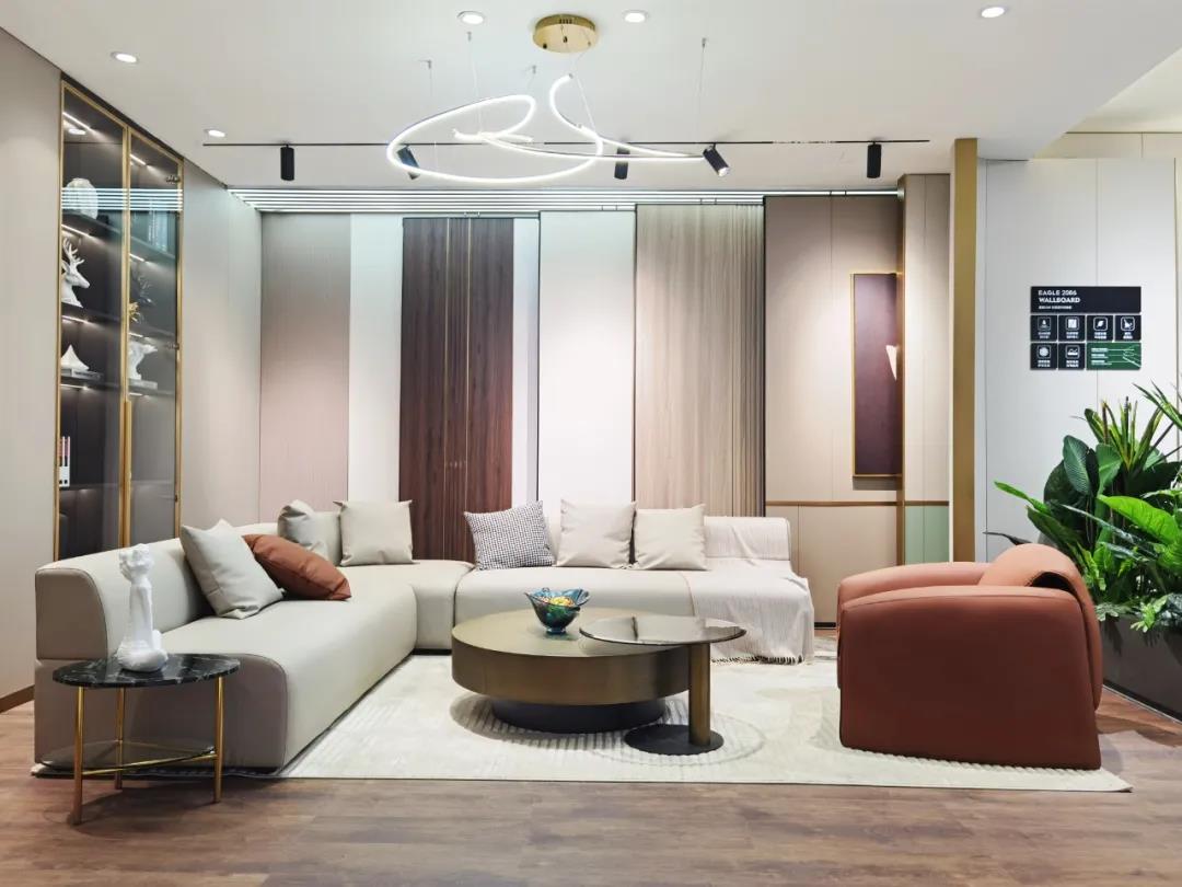 12月,鹰牌2086总部展厅终端美学馆空间改造正式完工,经过7天的时间,选用墙板和地板快速改造出一个功能与美学兼备的终端标准客厅空间,从产品应用到空间布局,从材料展示到动线规划,三大特点为全国数百家终端门店软硬件升级提供了标准模板,也提供了强有力的竞争优势。