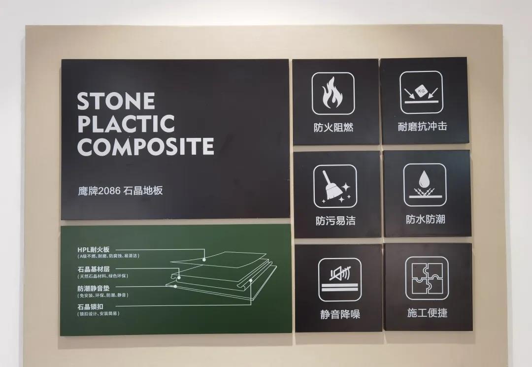 鹰牌2086终端标准样板间,针对终端门店装修时间长、成本高的问题进行了改善,整合旗下装配式护墙板和HPL石晶地板,包括未来即将研发的防火板、门、柜等一系列健康环保产品,采用干法施工工艺,可实现整体空间极速交付。