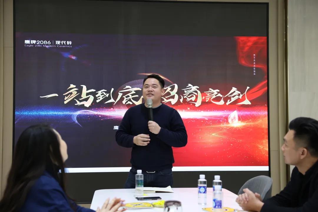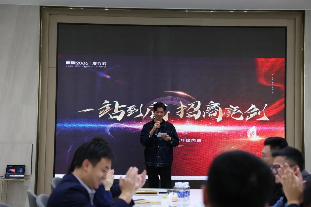 瓷砖十大品牌鹰牌2086运营部培训师钱香益为营销人员开启了一场干货课程《如何高效招商》,钱老师分别从核心竞争力、引流获客、内容营销、高效转化、赋能新商五大内容非常全面地去讲解和传输对应的招商技巧,与大家积极地互动,从而激发营销人员深入思考和吸取。
