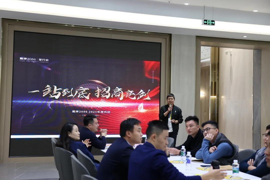 首先由鹰牌2086运营部资深培训师何俊为大家带来《年度招商分享》,讲解2021年举办的区域招商活动的标准招商模式,结合新的招商形式,2022年将启动新的招商2.0。