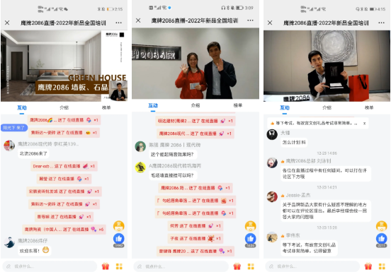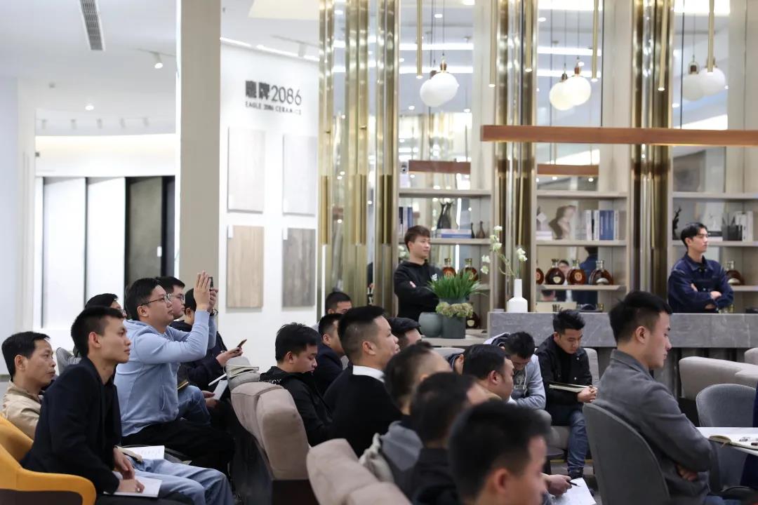 12月23日,鹰牌2086总部举办了一场关于2022年新品的线上直播培训,针对鹰牌2086全国终端销售进行全面提升,涵盖鹰牌2086品牌新赛道、瓷砖新品“和系列”和“墨韵系列”培训、装配式墙板和HPL石晶地板基础知识及空间应用讲解、2021广州设计周回顾等等内容。
