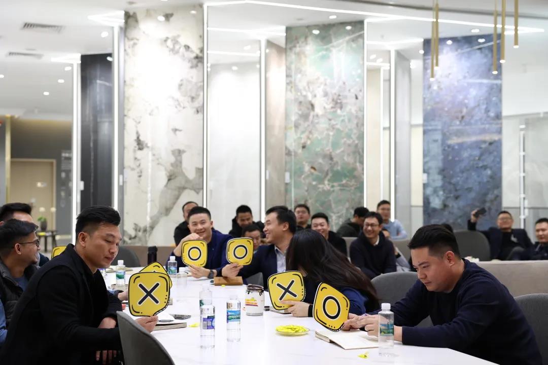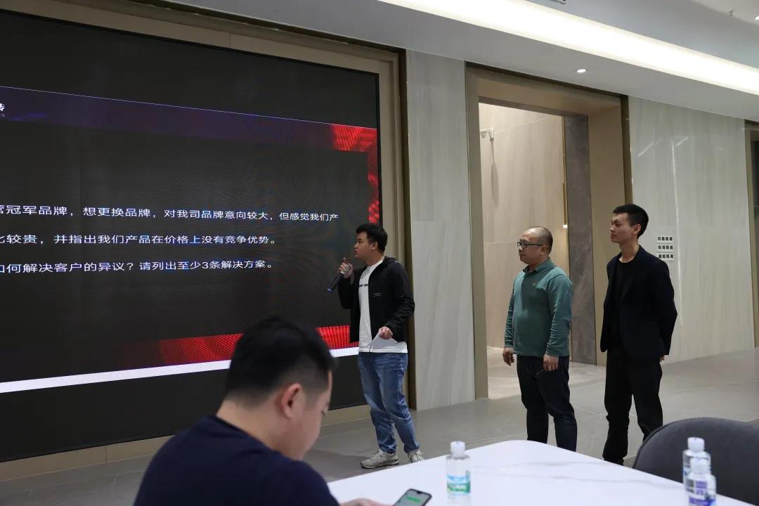 随后,内训会进入第三环节:团队PK擂台赛。所有营销大区参加,针对不同的命题,由大区成员进行轮流简要应答,再由评委进行评审,擂主接受其他大区挑战,最终决出优胜者,各组成员积极的出谋划策,运用刚刚学习的课程,结合自身的经验,在最终角逐中给对手予以反击。