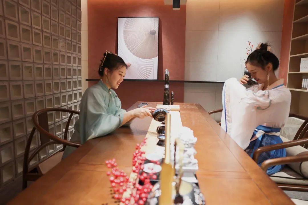 故宫红墙、太湖石、雕刻壁画、紫禁城、禅意茶室......一步一景,京砖艺术馆内每个空间都是最佳拍照点,无论你是现代装、民国装、汉服古装等,风格皆宜,出片率极高,不仅满足你的微信九宫格以及微博十八宫格,而且够小众,不会轻易“撞片”!