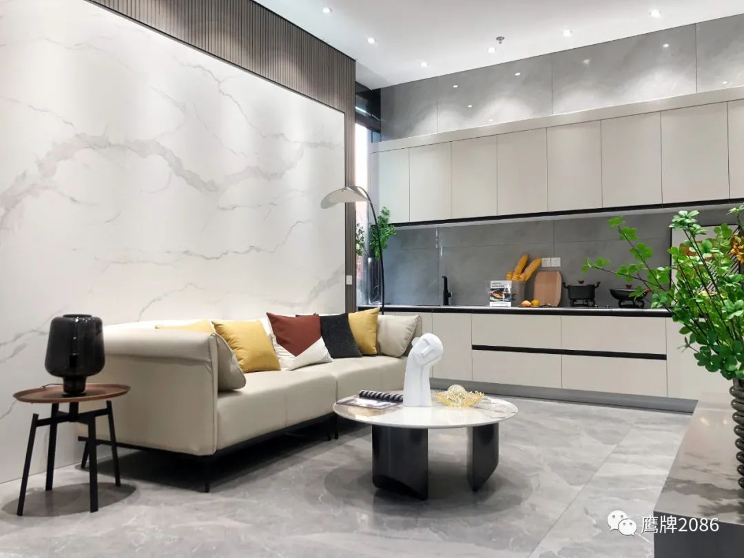 瓷砖一线品牌鹰牌2086广西柳州店探索以人为本的生活美学,融合自然、文化、艺术等,为当地消费者打造现代时尚简约的人文生活空间。