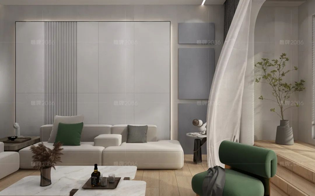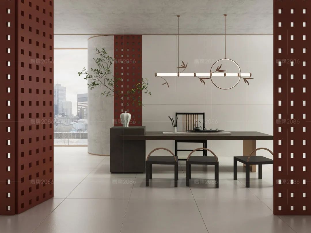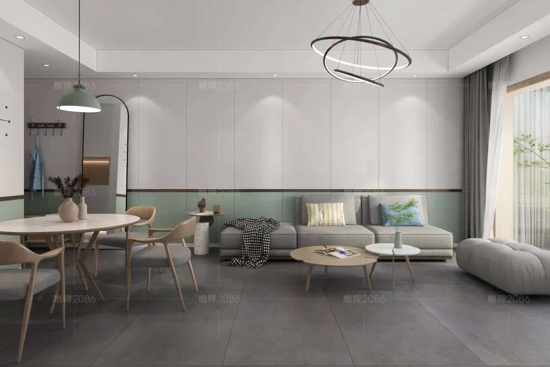瓷砖十大品牌鹰牌2086和·微水泥系列,从纯粹单品走向有序空间,通过空间表现,探索现代风、