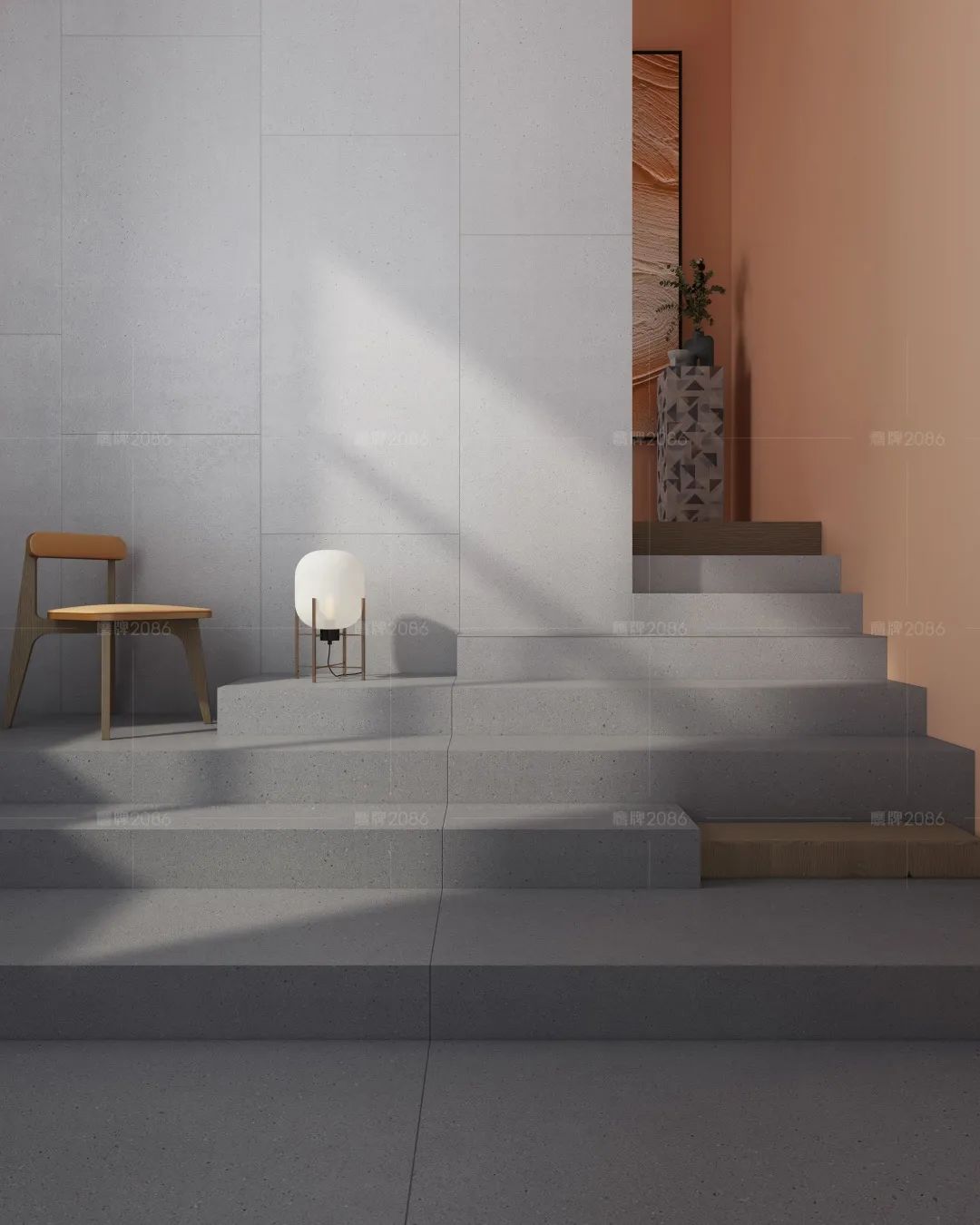 瓷砖一线品牌鹰牌2086新品「和·微水泥系列」以混凝土水泥板的跨界应用为创作灵感,多种素材的碰撞,