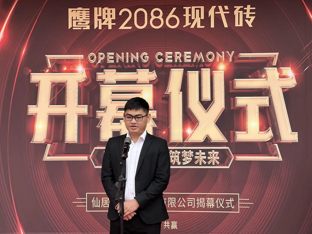 鹰牌2086浙江仙居旗舰店总经理吕俊杰先生致辞中表示:“我们在仙居建材行业深耕15年,一直秉承客户至上、服务至优的原则,鹰牌2086仙居旗舰店的落成,预示着我们将为仙居市民提供更多高质量新品,为广大设计师、业主消费者筑造理想的家。