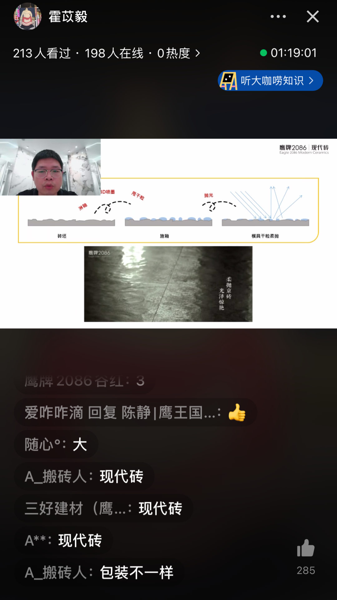 瓷砖十大品牌鹰牌2086总部运营部策划的线上直播培训,极大促进了全国经销商的业务学习与厂商交流,全国各销售团队反馈体验度好、参与度高,有力地保障了常态化疫情防控期间队伍人员的培训需求。