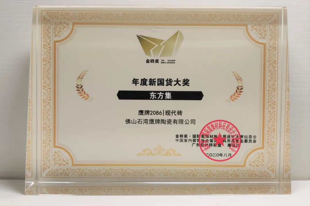 借此,鹰牌2086「东方集」系列三个产品依次荣获第五届中国意大利陶瓷设计大赛金奖、第七届中国意大利陶瓷设计大赛金奖、第十六届中国陶瓷行业新锐榜原创设计产品金奖、第九届中国意大利陶瓷设计大赛概念设计金奖等多个奖项。