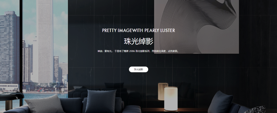 目前,鹰牌2086主推产品系列包括但不限于:专为大宅定制的大规格瓷砖「浩瀚之境」系列;根据不同光泽度打造的「珠光绰影」系列;媲美木地板的健康环保「木色年代」系列;汲取天然石材灵感的「原生石韵」系列;艺术砖「缪斯」系列,为消费者打造