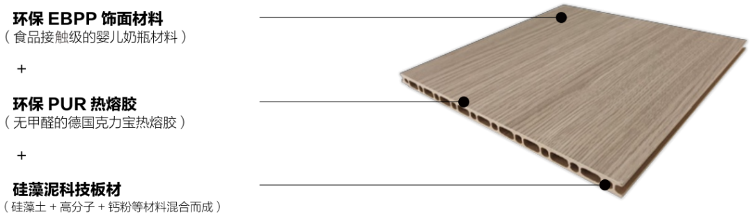 硅藻泥科技墙板:是由硅藻泥科技板+环保PUR热熔胶+环保EBPP饰面材料组合而成的,不仅能实现轻便快装、杜绝甲醛/TVOC的释放,还能拥有防污易洁、抗菌抗敏、 防水防潮、抗弯耐用等性能,是品质与健康的双重保证。