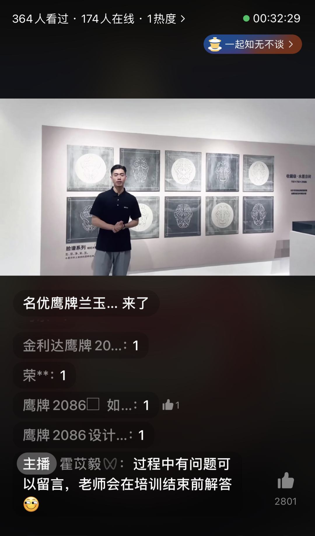 瓷砖十大品牌鹰牌2086总部运营部策划的线上直播培训,极大促进了全国经销商的业务学习与厂商交流,全国各销售团队反馈体验度好、参与度高,有力地保障了常态化疫情防控期间队伍人员的培训需求。