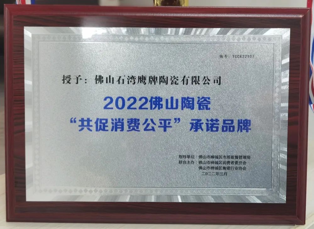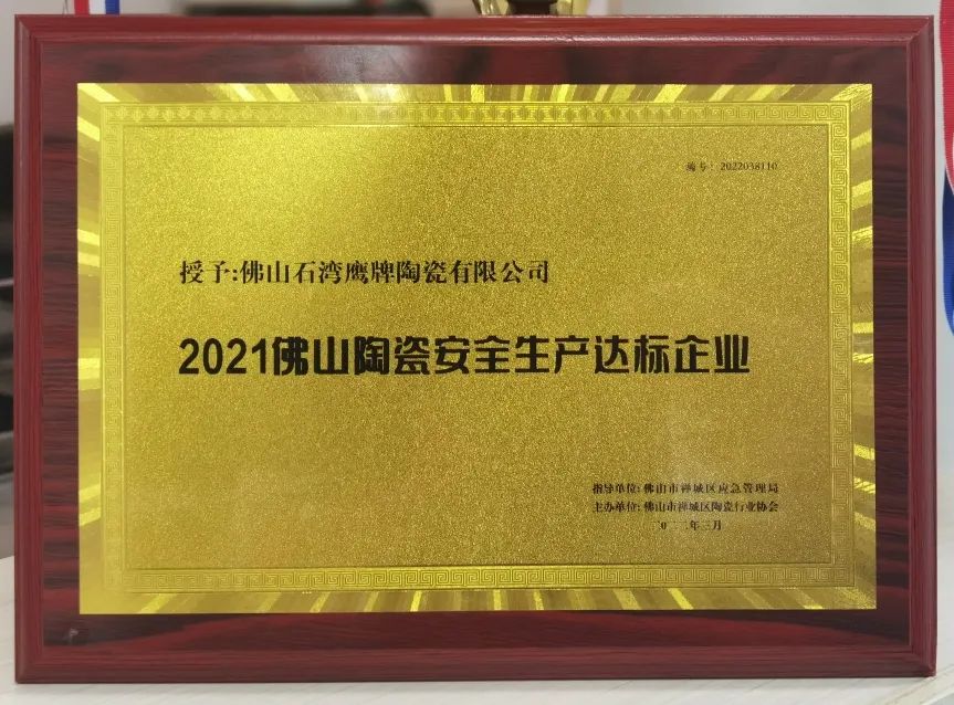 佛山石湾鹰牌陶瓷有限公司凭借48年的品牌底蕴、严格的企业生产标准被授予“2022佛山陶瓷共促消费公平承诺品牌”以及“2021佛山陶瓷安全生产达标企业”双重荣誉!
