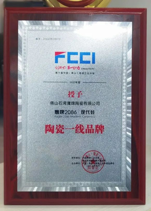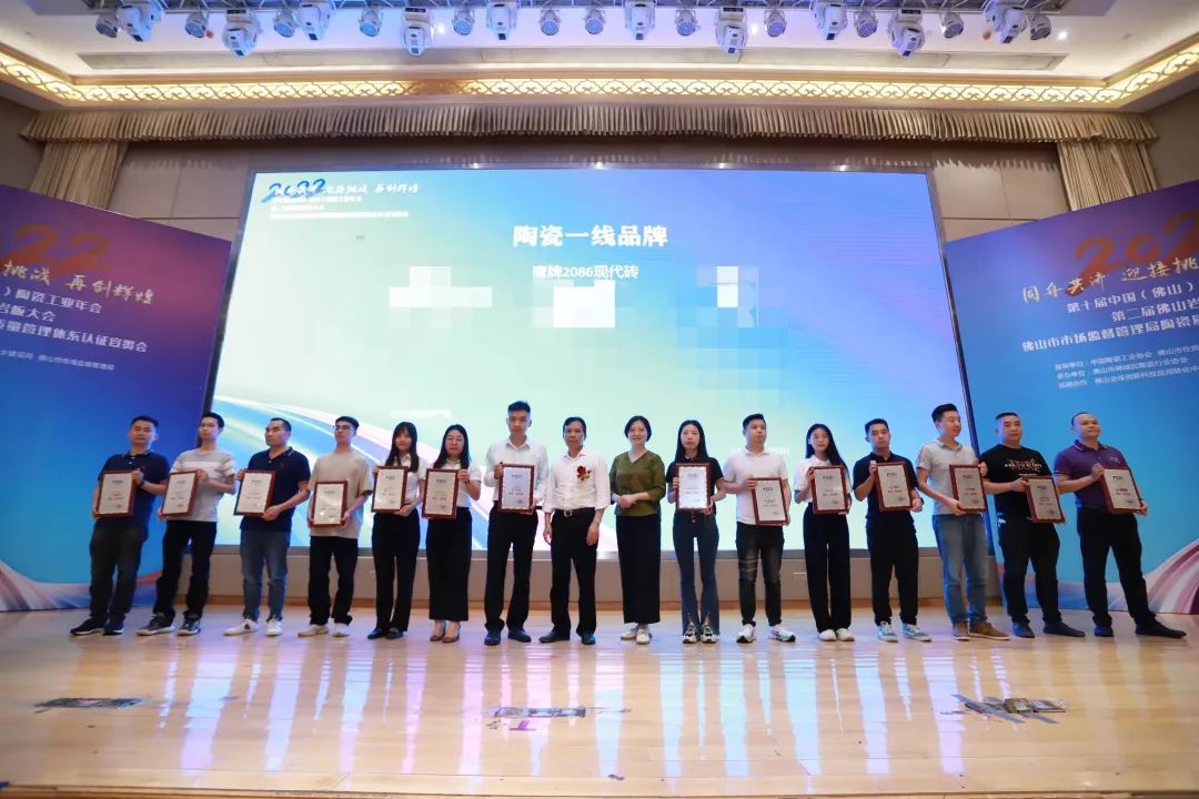 精彩的演讲过后,进行2022年度陶瓷行业荣誉榜授牌仪式。鹰牌2086现代砖凭借出色的品牌影响力、产品原创力和设计力,获得由中国(佛山)陶瓷工业年会组委会颁发的“2022年度陶瓷一线品牌”荣誉证书!