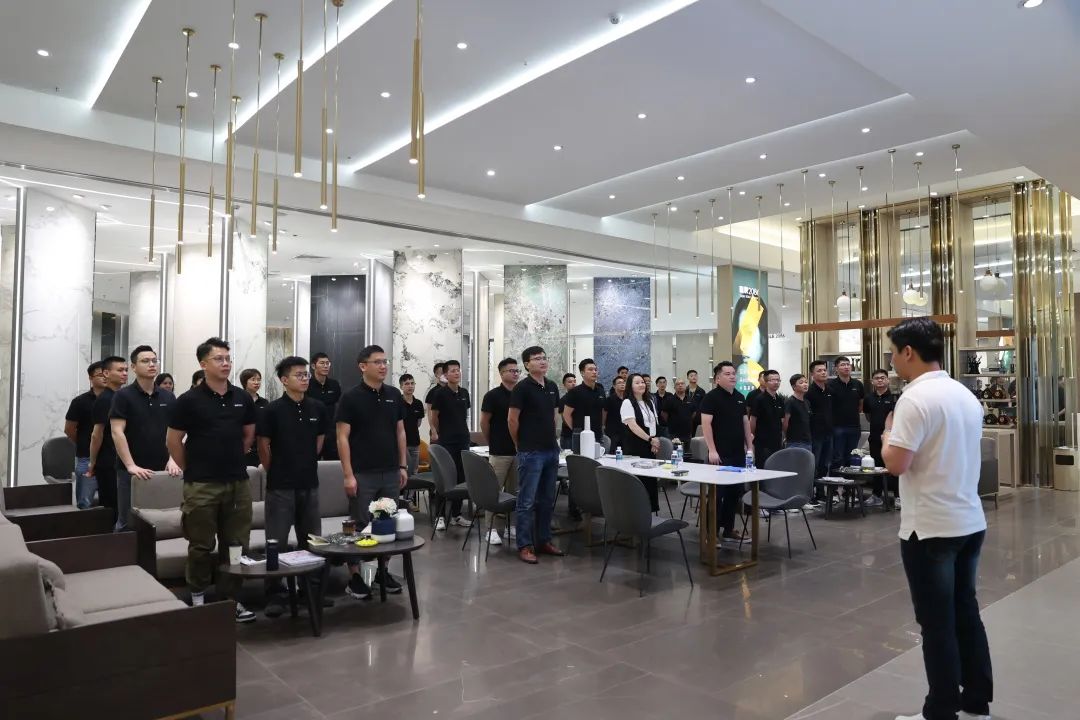 上午,为加深各同事对鹰牌2086品牌、产品、设计的理解,围绕“新品牌解读”和“产品及店面设计标准”两个主题开展全员培训。