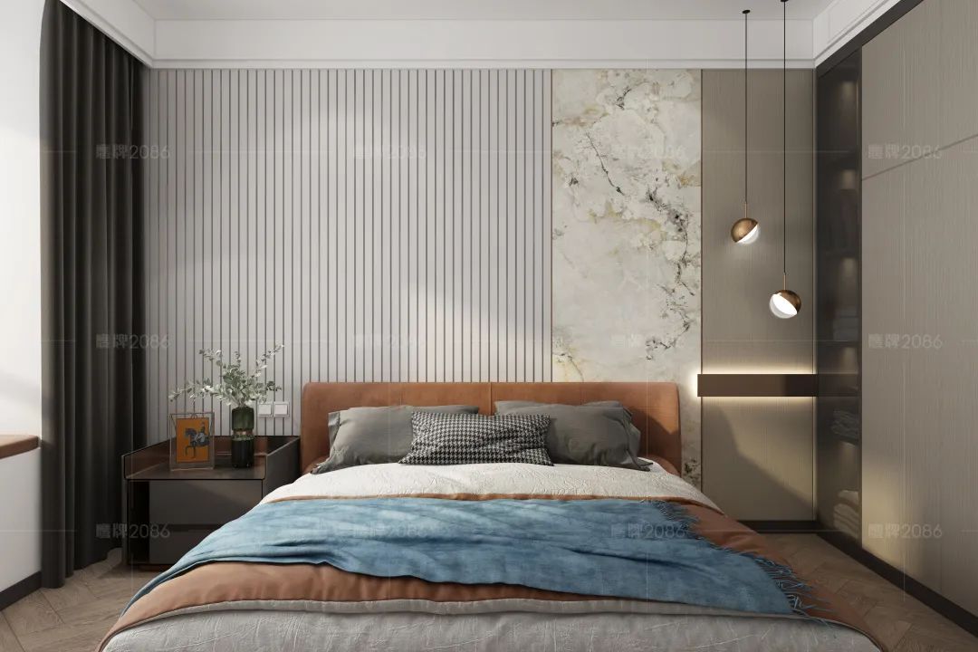 次卧背景墙:浩瀚之境系列 +木纹平面护墙板+肤感长城造型板