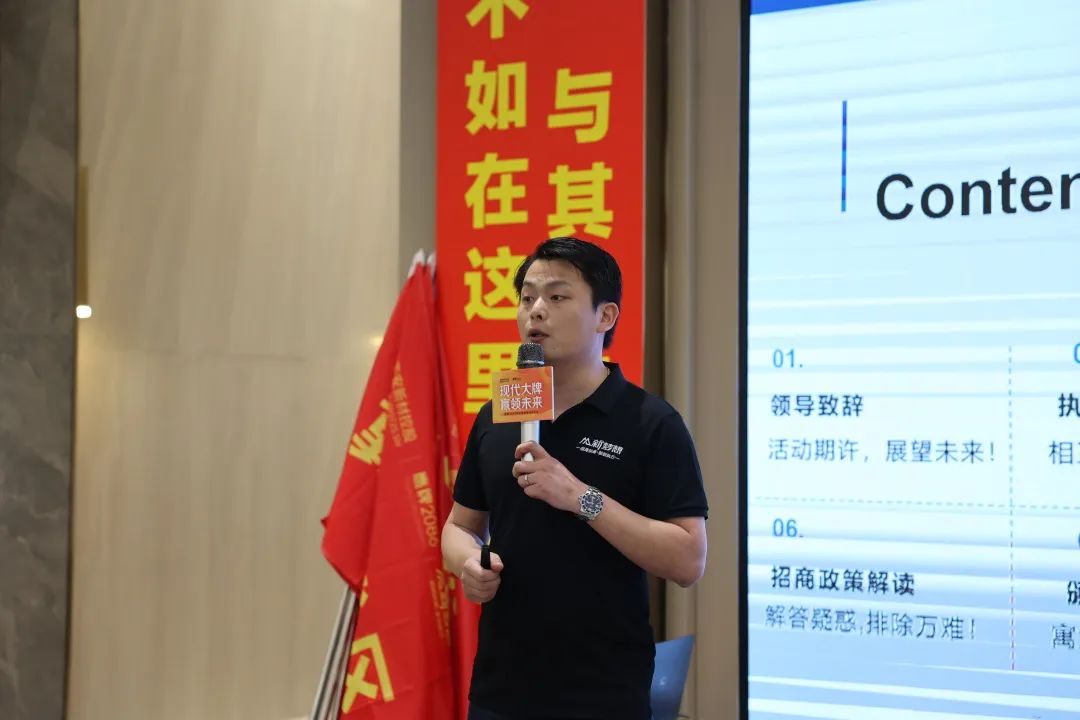 招商启动会伊始,鹰牌集团副总裁/鹰牌2086营销总经理陈方根为大家加油鼓劲。他表示:面对外部环境的不确定性和市场变化,我相信在座每一位都充满了焦虑和迷茫,不知道要做什么,不知道要怎么做,如何提升自己,如何构建优势。这次品牌联合第三方去做专项招商活动,就是在动荡不安的市场环境中给大家指明方向,在这个阶段工作聚焦,专项突破,以全力以赴的态度和竭尽全力的付出,迎接挑战,最终一定能达到超出预期的结果。