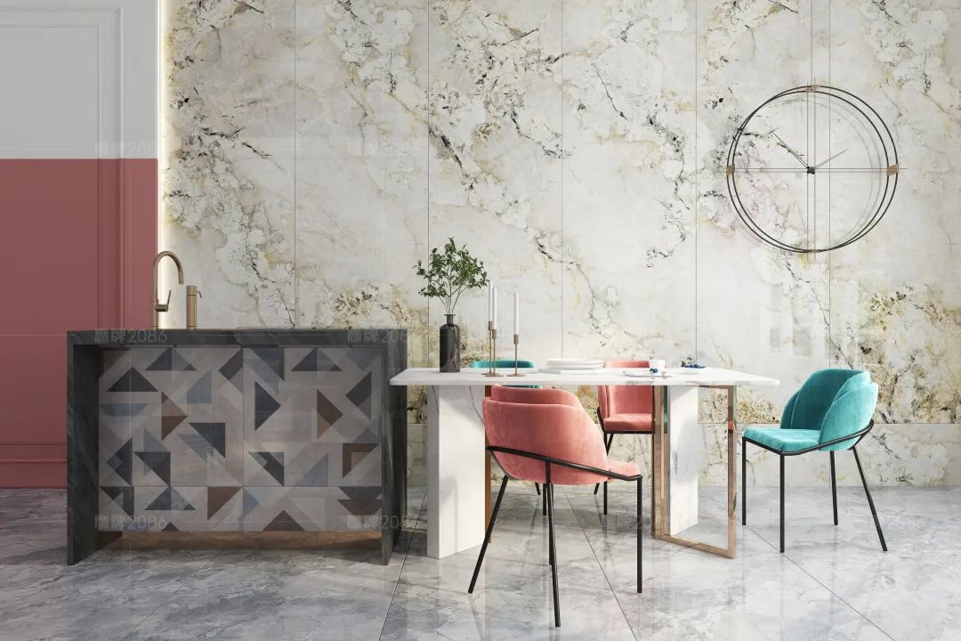 恢弘大气的大理石纹深得人们喜爱,一石多面还不够,无限连纹更完美。砖与砖之间实现精准拼接的连纹背景墙,在视觉上实现无限延伸,一片到顶,无缝更气派。