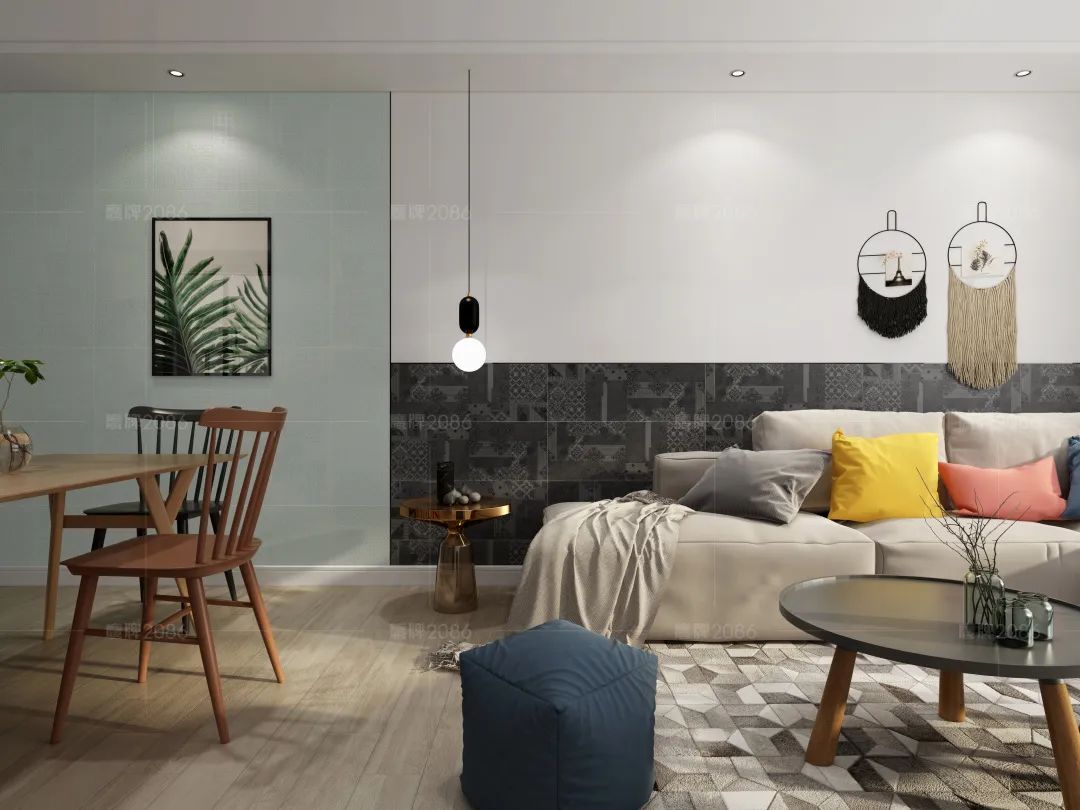 先进喷墨技术,使瓷砖在色彩领域上更丰富,更出众。利用瓷砖本身的颜色碰撞出多彩的沙发背景墙,不规则的包边细节,使空间看起来更有活力,更出彩。