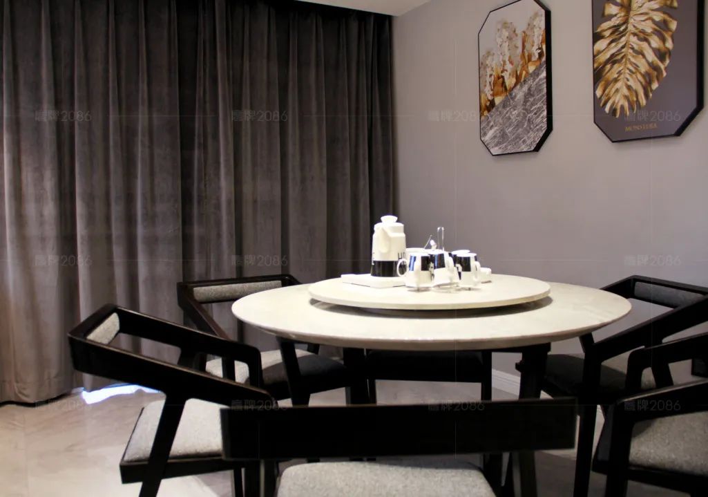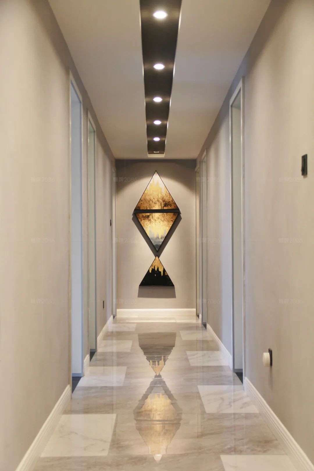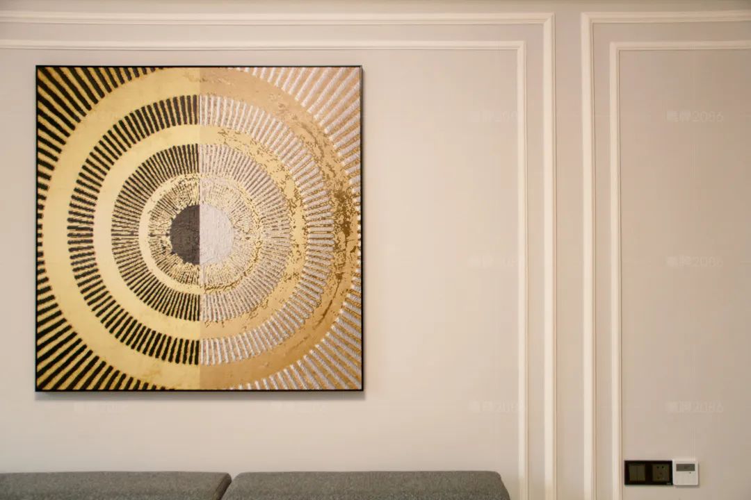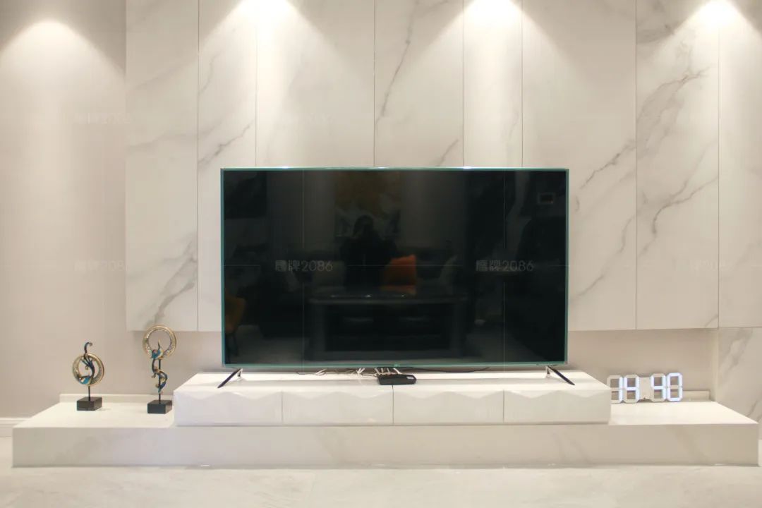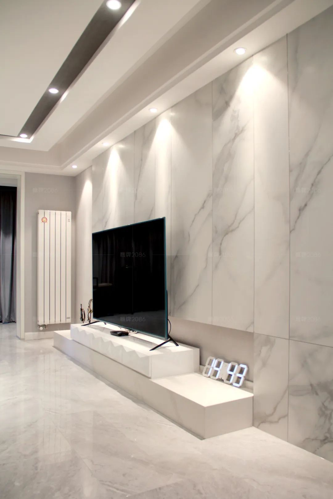 客厅的电视背景墙与沙发背景墙完美呼应,电视背景墙用“浩瀚之境”系列大板切割铺贴,简约大气,不会抢电视画面的焦点,视觉舒适;沙发背景墙则用具有泼墨感的产品进行呼应,雪山挂画与气势磅礴的背景相映成趣,彰显主人的处世哲学,低调谦逊,而又胸襟广阔。