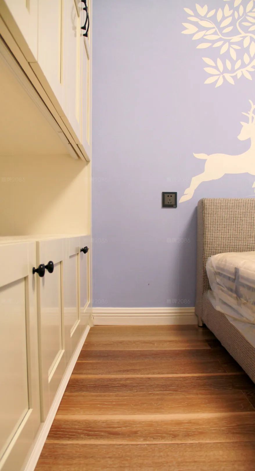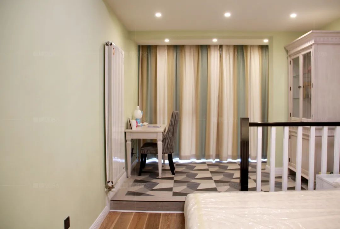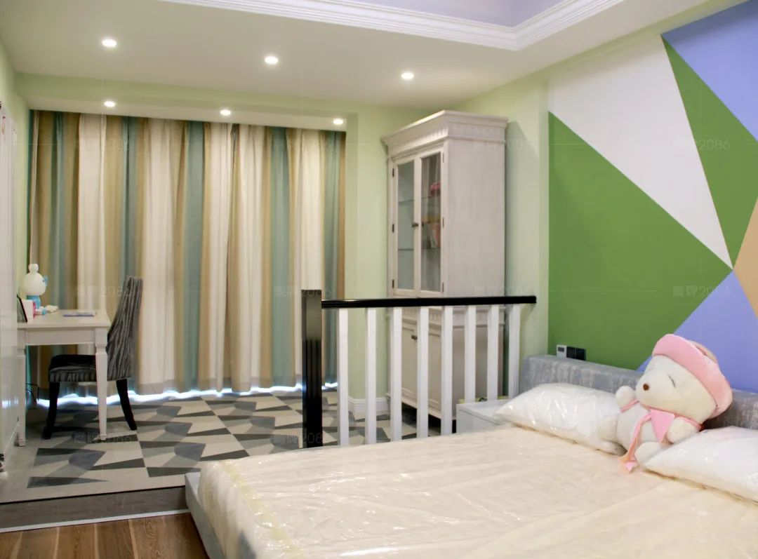 儿童房的设计用鲜艳的色彩营造空间活力,地面抬高搭配几何地砖,进行区域的划分。