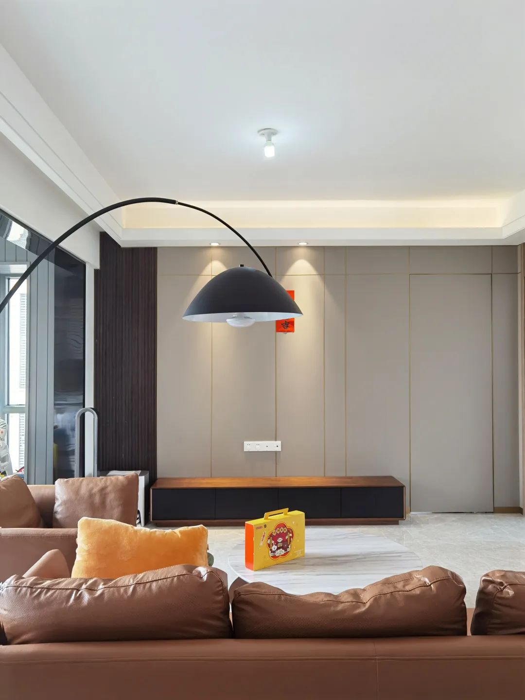 在无主灯的空间格局下,现代简约的空间布置,呈现出一种舒适轻松的惬意氛围感。