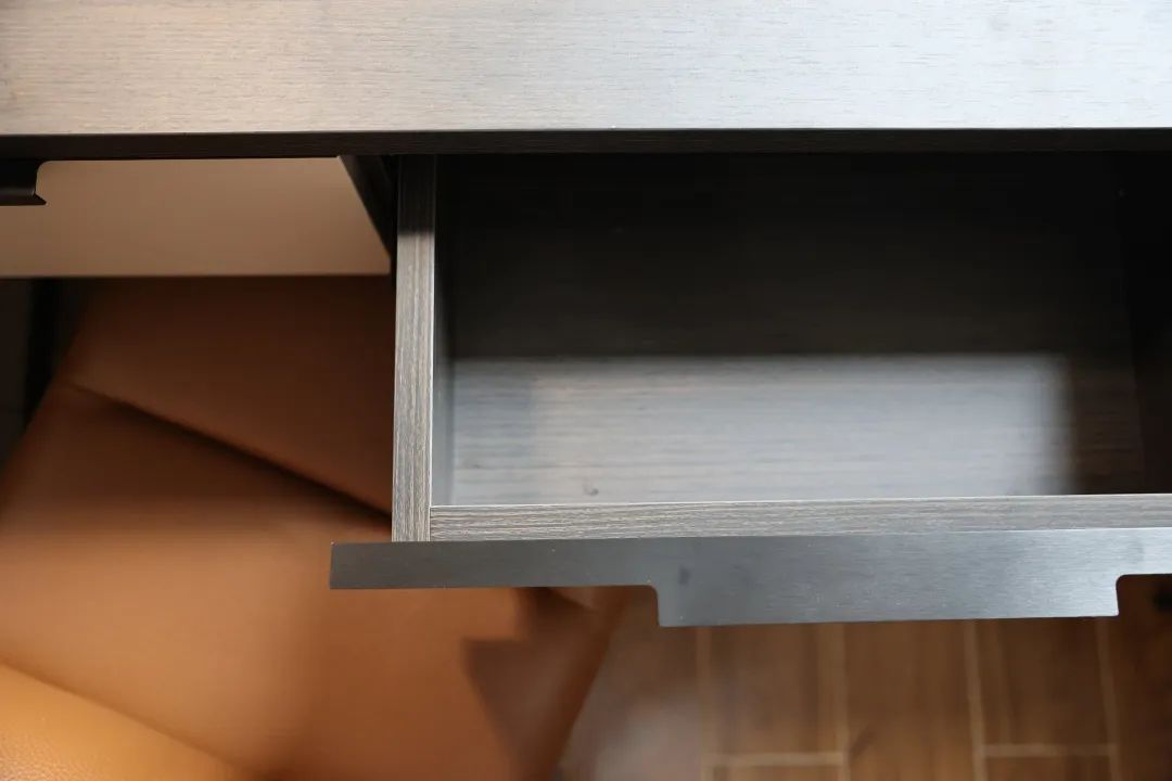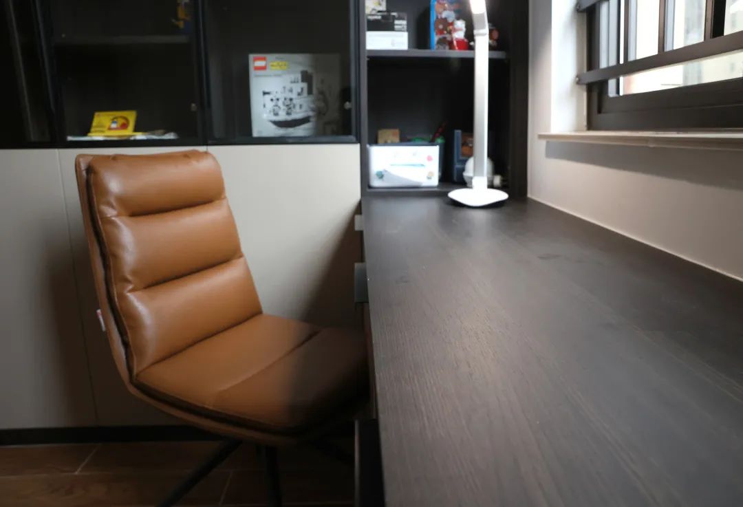 书桌悬空定制安装,与书柜连成一体的设计,显得格外的简约自然。