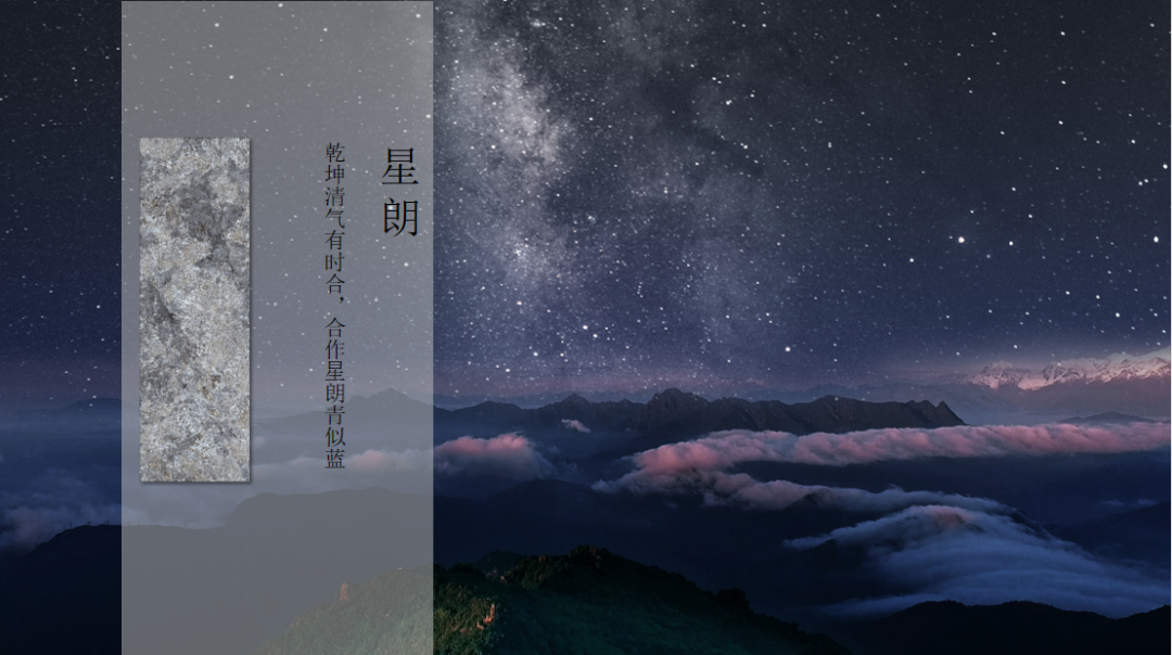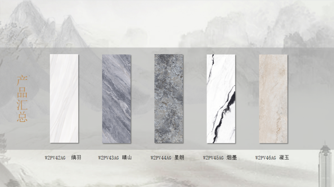 除此之外,“缟羽”、“晴山”、“星朗”、“烟墨”、“凝玉”等产品名字也花了点小心思,根据产品纹理特点,紧扣国风调性,于细节处展现中国传统文化的意境。