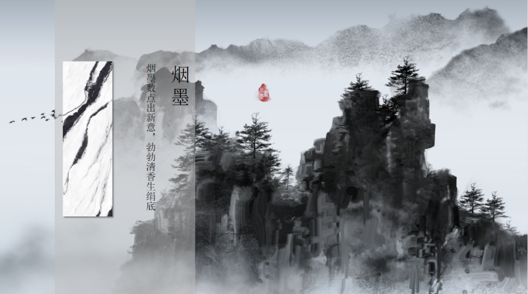 鹰牌2086浩瀚之境系列新品——国风岩板,将古典文化与现代石材相结合,从自然界中提取纹理,赋予更深层次的文化寓意。