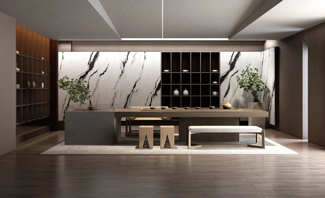浩瀚之境——国风岩板,集现代工艺糅合自然与传统,展现东方意境魅力,承载国人审美情愫。把中国传统山水文化融入到现代家居生活,空间里展示的国风意境之美使人游离并沉醉其中。