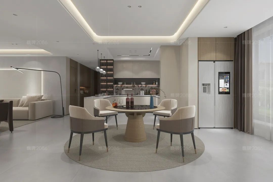 餐厅用木质营造轻松自然的氛围。配合极简的软装设计,还原了现代都市人所追求质朴纯粹的“归家情怀”。