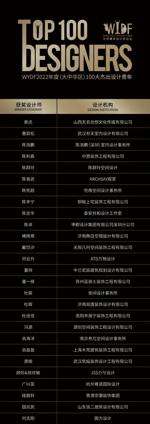 再次祝贺以上荣获“WYDF2022年度(大中华区)100大杰出设计青年”的设计师!