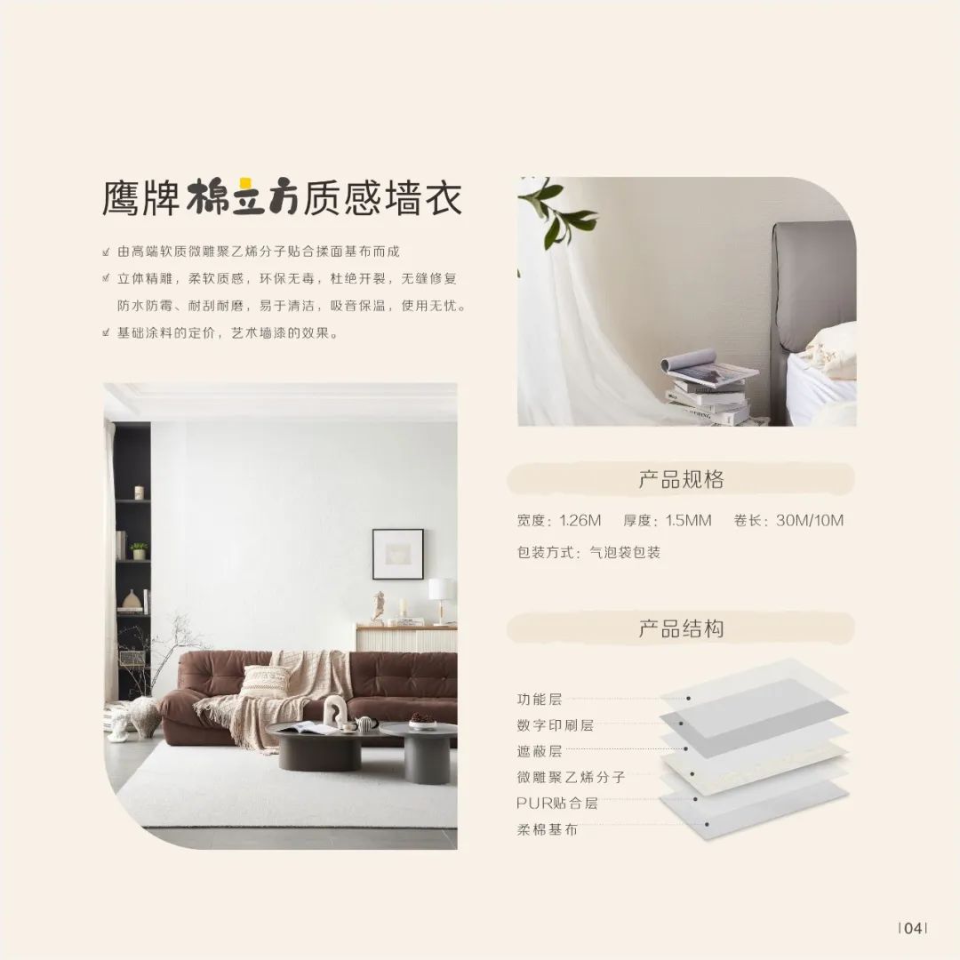 质感墙衣【棉立方】重磅上市是鹰牌集团践行“陶瓷+大家居”双轨并行的战略新起点,实现以母公司天安新材的泛家居生态链,围绕装配式内装概念,在产品研发上做进一步延伸,开启了瓷砖、墙板、地板、防火板及墙衣产品的一体化销售与服务。鹰牌集团质感墙衣【棉立方】是鹰牌大家居产品的一部分,与原有陶瓷产品形成互补,进一步扩充了鹰牌集团的产品体系,在未来,也将进一步推动鹰牌集团的多元化渠道布局与大家居战略的深化发展。