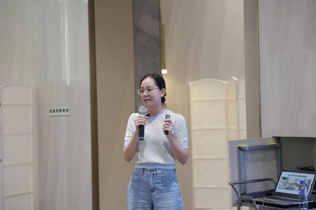 天安集成总经理何婉枝针对鹰牌集团质感墙衣新品类,从市场机会、产品介绍、产品优势、性能报告、产品应用五个维度,给鹰牌集团营销人员进行了非常专业的知识科普。