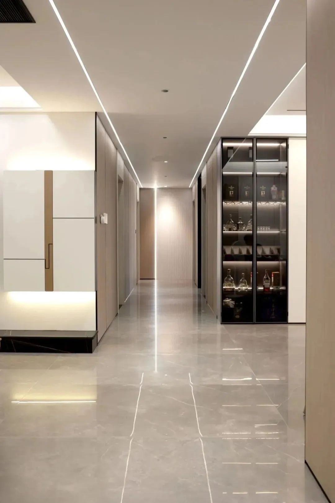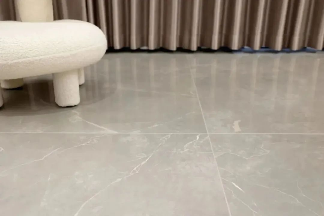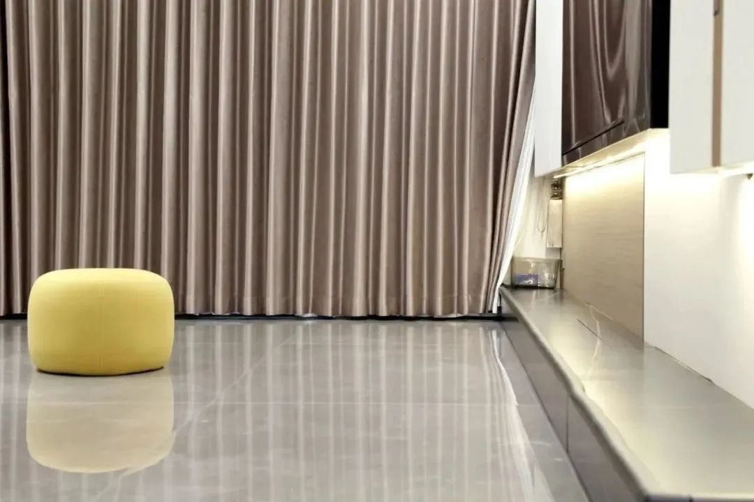孩子总喜欢光脚到处跑,根本拦不住。客餐厅地面通铺鹰牌2086浩瀚之境系列普佩石L0PD03BG暖灰色柔光砖,光脚踩在上面是一种温润的感觉,既舒服又不用担心孩子光脚跑会着凉,并且避免了光污染刺激孩子眼睛。