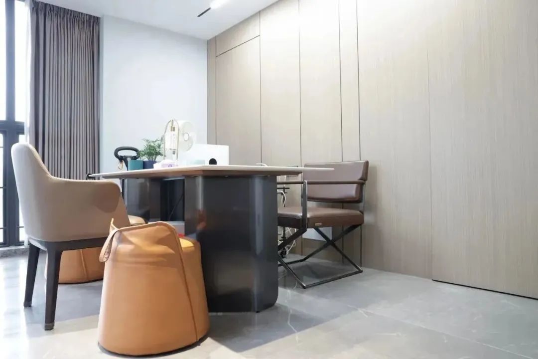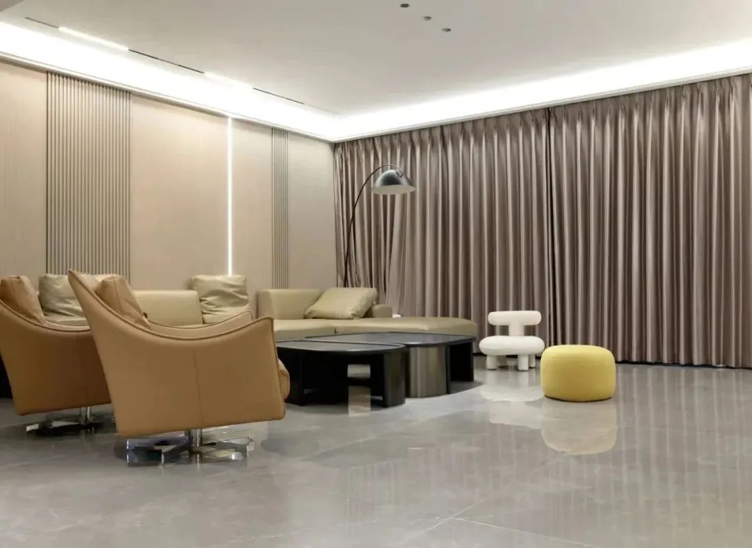 一间素净的茶室,闲暇处才是生活。主砖通铺进茶室,整体性更强,木纹护墙板将空间衬托得愈发自然宁静。
