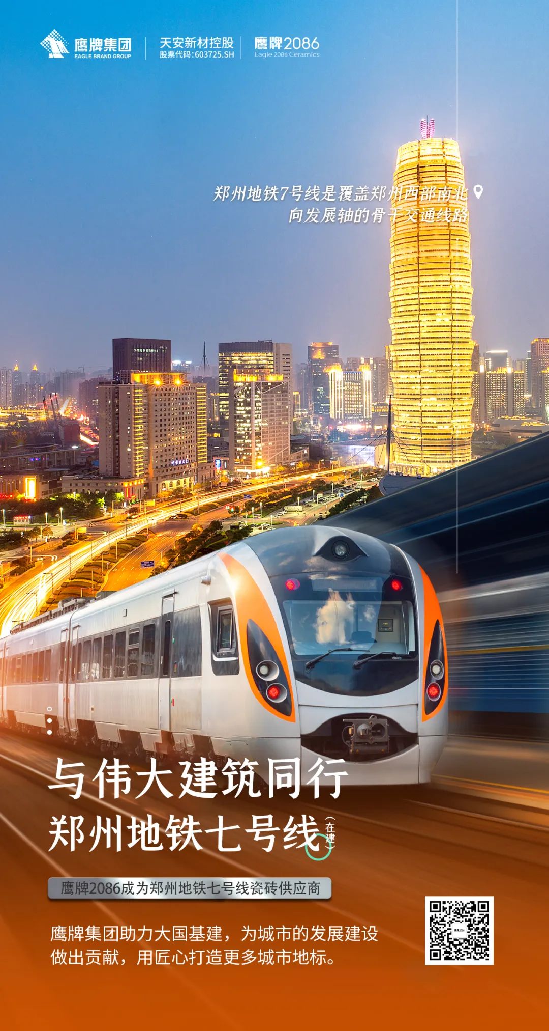 鹰牌2086成为郑州地铁七号线瓷砖供应商