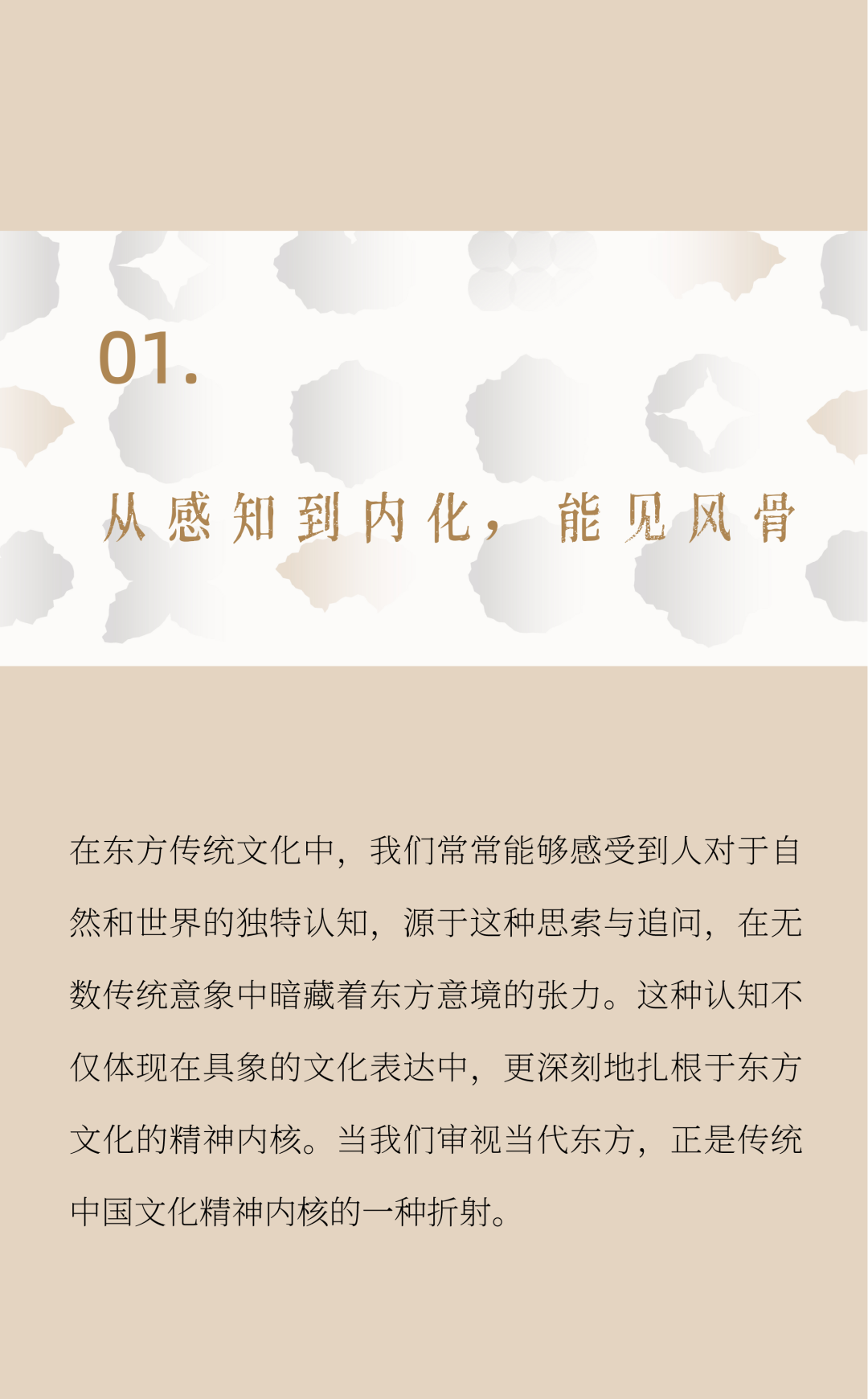 在进击的全球化浪潮里,具有思辨性、主体性的东方智慧逐渐向世界展现锋芒。信步闲庭,能见风骨,民族古老文明的精神性与向外探索的现代东方美学实现了绵延紧密的交融。东方美学正以更多维的回溯、深剖、探索、重创催生出更多的实践和创作。文脉同国脉相连,经历了发言权流变的历史后,文化力量开始从另一个方向-从东方-流回东方。