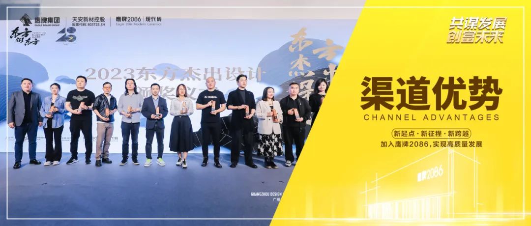 2023年期间,鹰牌2086联合广州设计周发起东方杰出设计大赏奖项评选核心项目,发掘五十位中国当下的多元设计表达和新锐设计创造者,并在广州设计周展会「东方的东方」年度盛典上举行隆重的东方杰出设计颁奖典礼,鹰牌2086营销副总经理朱文强上台为设计师颁奖,为东方杰出设计荣誉加冕,展现更强东方美学设计水平。