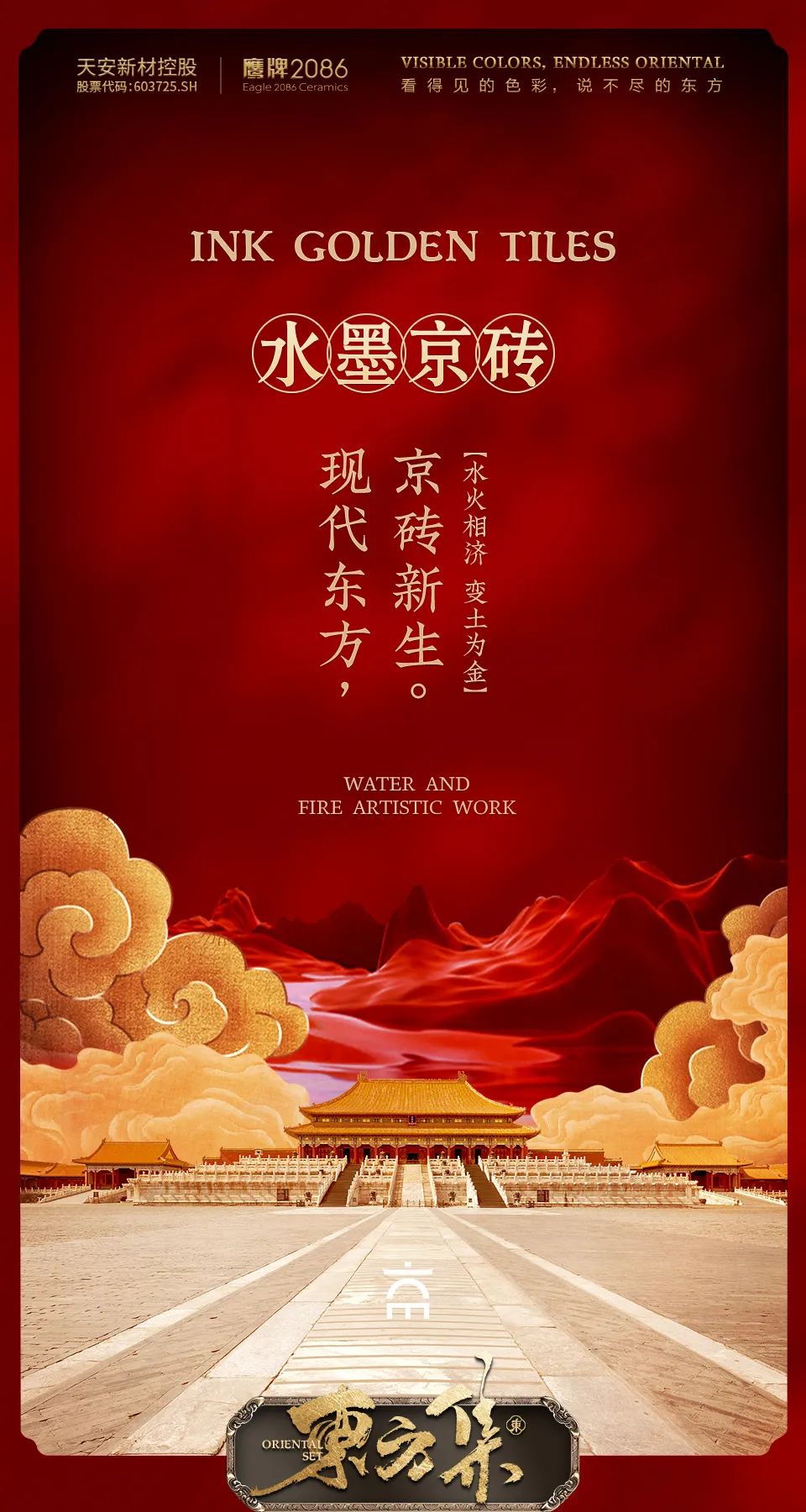 很多品牌在产品研发方面还停留在材质表面的仿真,如仿石纹、仿木纹、仿布纹等等,而鹰牌2086的形象产品水墨京砖,不仅仅是对纹理、色彩、质感的复刻,更专注于对古法金砖历史文化的溯源以及对中国非遗文化的致敬。