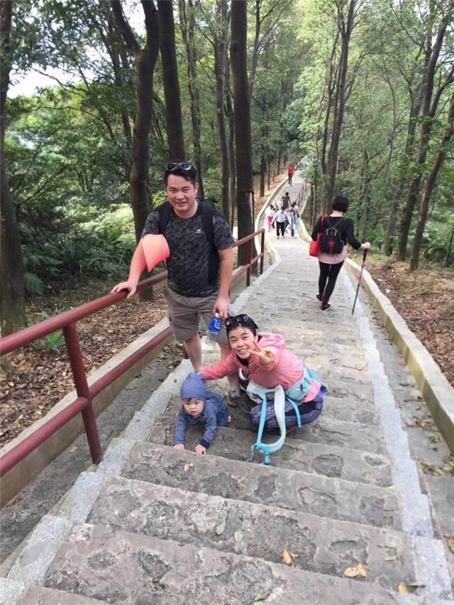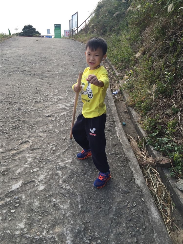 年仅七岁的黄小弟一路领先,小小年纪的他也成功登顶。(此处应有掌声)