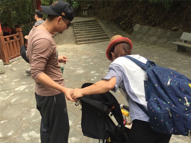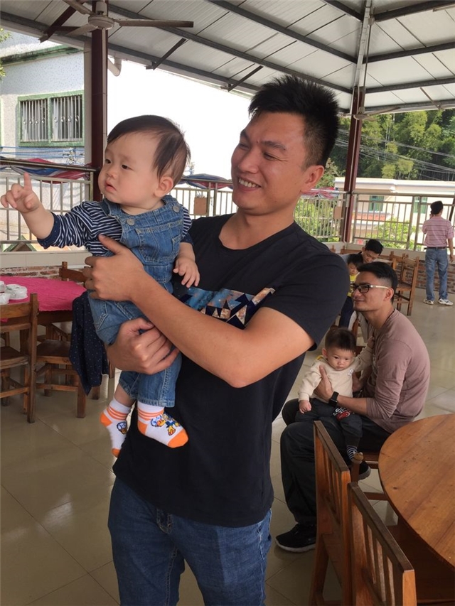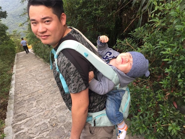 细心体贴的谈爸爸对仅有七个月的儿子一路亲力亲为。