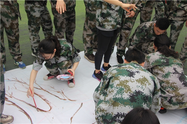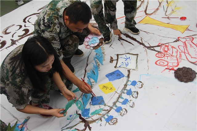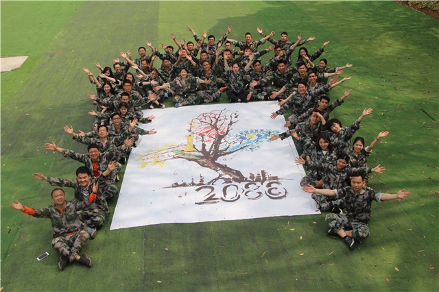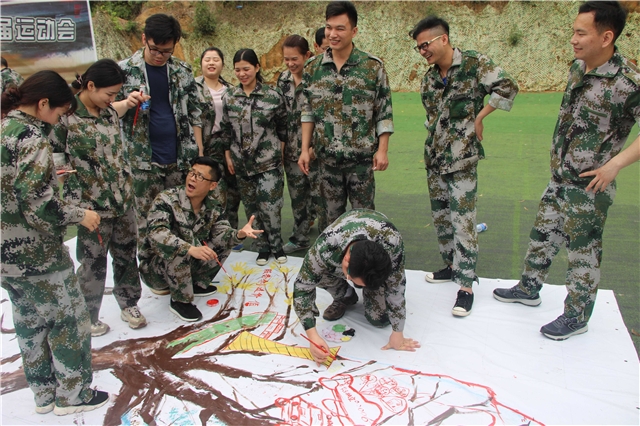 拓展第二天,从晨跑开始,唤醒精、气、神,迎接新一天的挑战。早餐过后,全体人员迎来了一个巨大的挑战——绘画心中的梦想蓝图,全体分工讨论,指挥组、设计组、执行组,齐心协力,从确定主题、构思设计、分工执行直至最终完成,90分钟的时间,留下每个人的期许与憧憬。