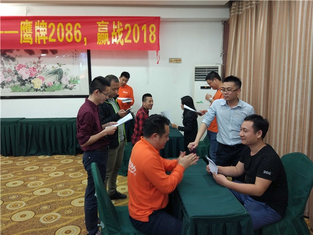 2018年初,为提升终端销售能力和服务水平,更好的服务经销商和消费者,鹰牌2086启动了EG新零售模式,即“E5终端门店业绩提升实战系统“和“G6客户极致营销体验系统”两个重量级项目,构建新消费时代下的全新场景体验和极致营销服务,所以拓展的最后,就是这两个项目的通关考核,确保每个销售人员都能熟练掌握,更好的运用的新一年的工作实践中。